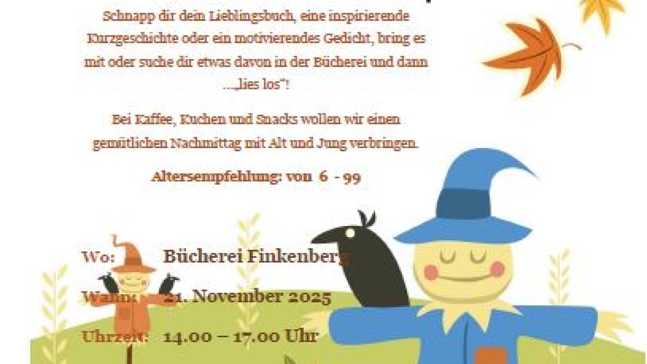 21.11.2025 Vorlesetag 2025 - LESEN. Öffnet die Welt. 14:00-17:00 Uhr. Kommt zu einem gemütlichen Vorlesenachmittag für Jung und Alt! Flyer Vorlesetag 2025Lesen. Öffnet die Welt